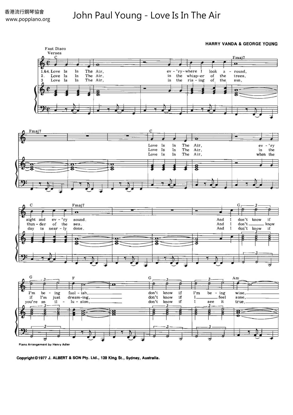 John Paul Young Love Is In The Air Sheet Music Pdf Free Score Download
