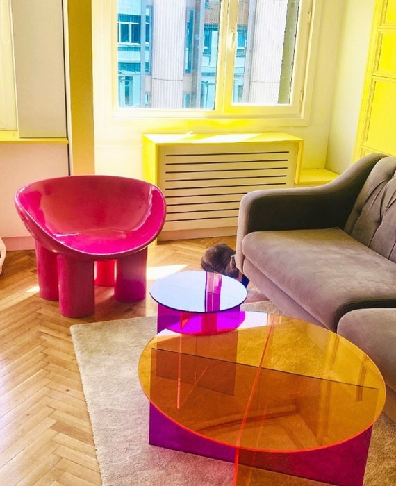 Neon Pink Orange Clear Colorful Acrylic Coffee Table For Etsy
